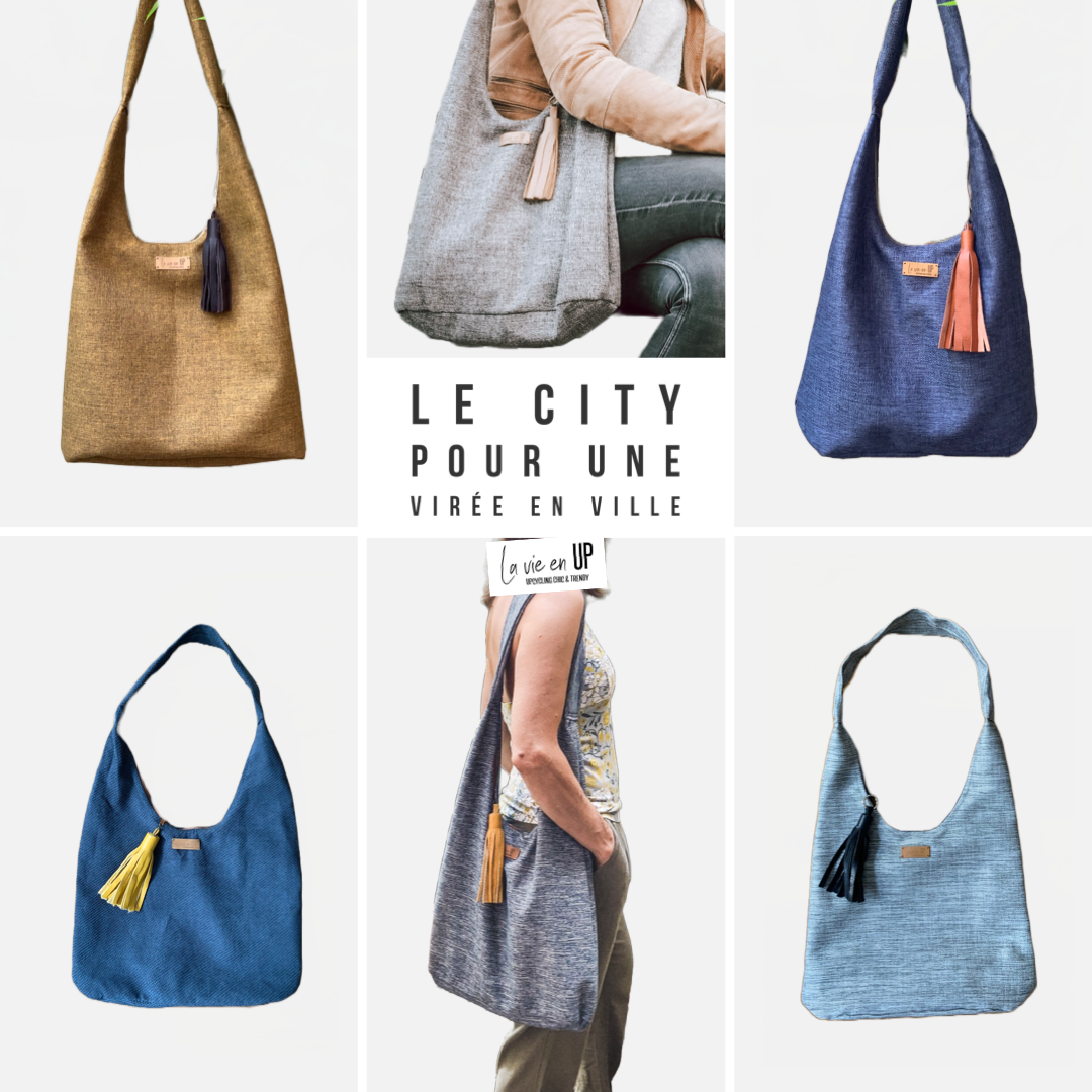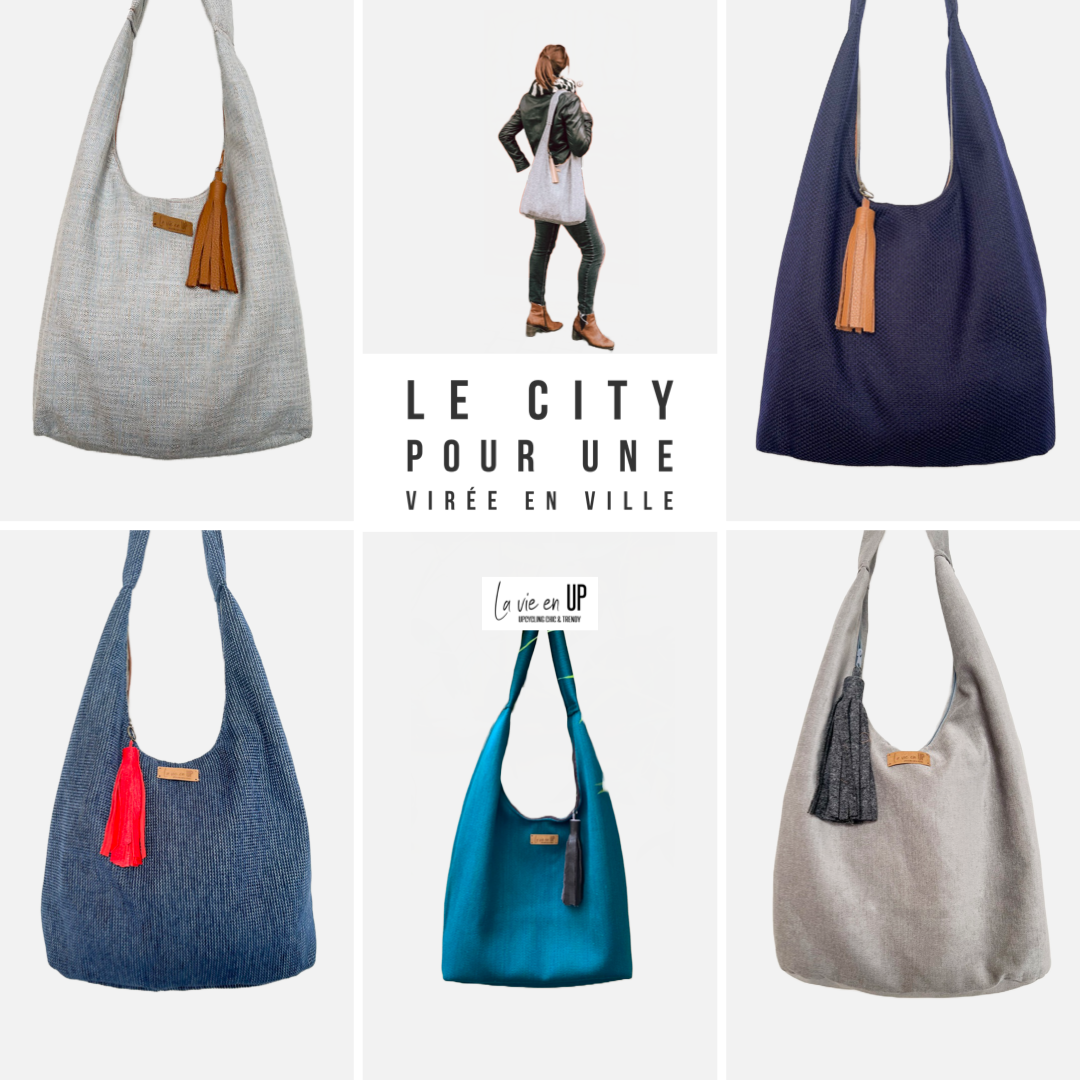 Chaque sac City est une édition limitée puisque fait à partir de chutes de tissus d'ameublement, de linge de maison upcyclés et de tissus en fin de série, disponibles en quantité limitée. Chez la Vie en UP, les sacs sont fabriqués à la main et localement. Très souvent il n'y a pas deux sacs identiques, tout dépend de la quantité des restes de tissu chinée.